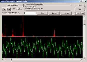 Summary: A program I wrote for high school physics that computes the frequency spectrum the long way (Discrete Fourier Transform) from a given sound wave.