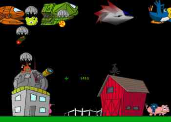 Summary: Short for "Parashooting Aliens", this game was the second produced by the CGCT, and it's a hellofa lot of fun. Seriously. Well, just resist the urge to shoot the motherships right off the bat, because then it isn't much fun at all. Hordes of aliens parashoot down to take over your prized pig ... try shooting only the alien, then only their parashoot. Oooh, and try the number keys 1-? for some awesome weapons and sound effects. And for some reason right-click stops the game, so don't click it!