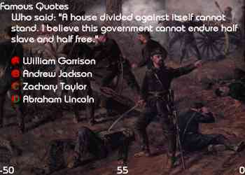 Summary: Written for AP History, this is a trivia game where two players face off about their Civil War history knowledge. Uses the above XMedia library.
